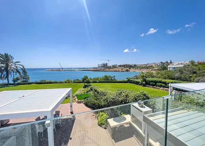 Erato Seafront Luxury Villa距离三一海滩1.9公里,设有4间花园景的卧室. Erato Seafront Luxury Villa提供设有相邻露台,阳台 和个人保险箱的房间.